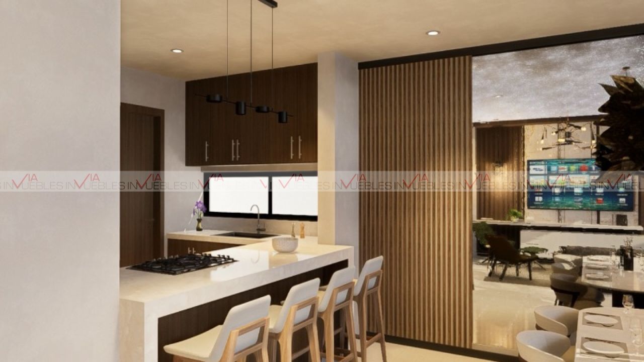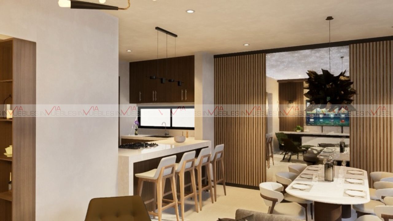 Su cocina semiabierta con barra desayunadora es un puente al área social.