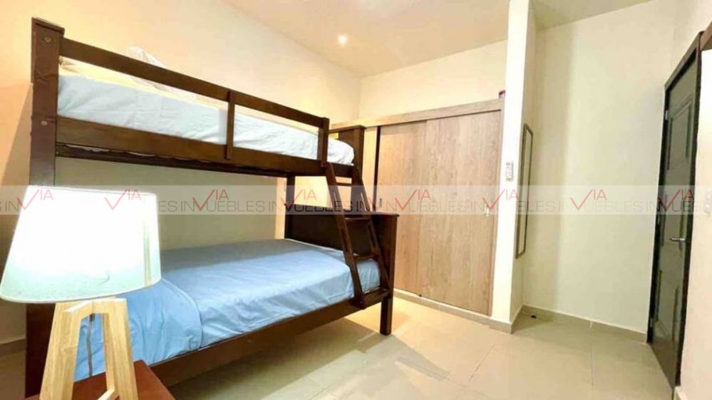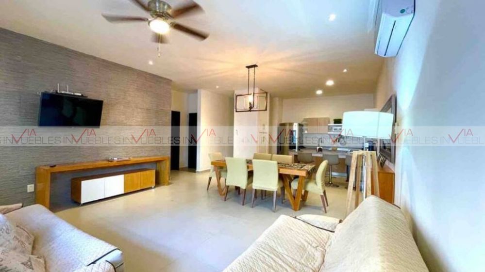 Cuenta con 3 recámaras amuebladas, 2 baños completos, cocina equipada con refrigerador, campana, estufa, sala y comedor amueblados.