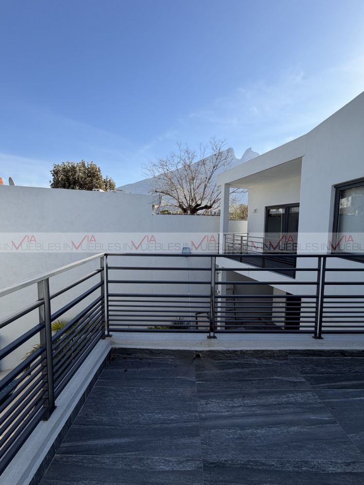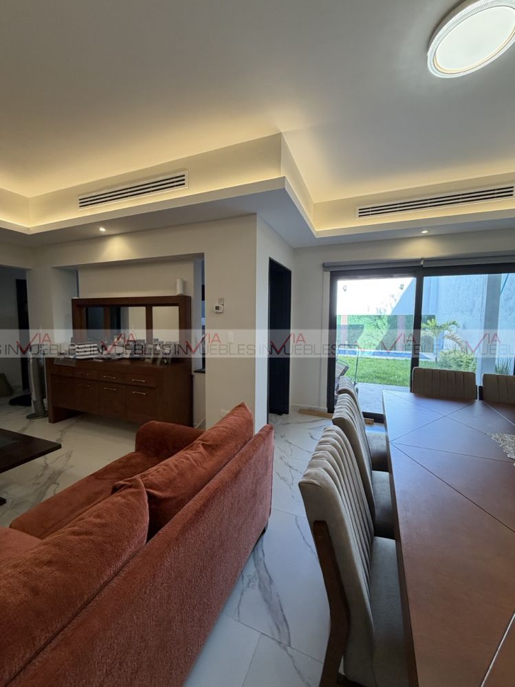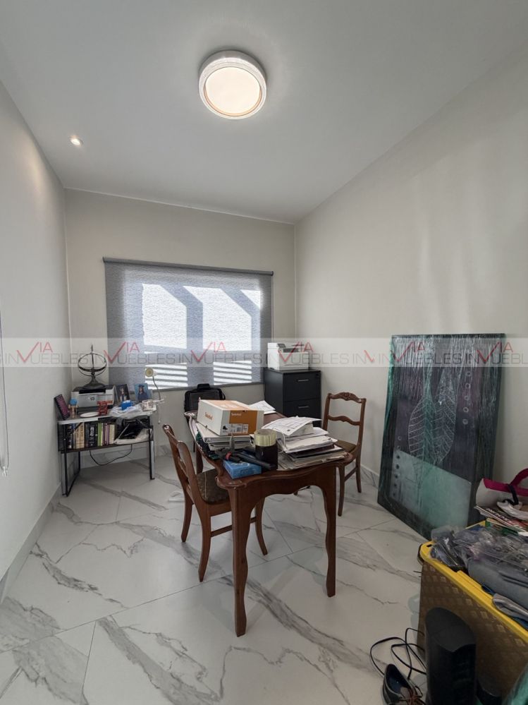 casa en venta en contry , en excelente ubicación cerca de av principales , comercios , tec de monterrey , en el sur de monterrey , la casa cuenta con 2 niveles , planta alta 3 rec todas con su walk in closet , baño completo , estancia , en plnata baja , recibidor , sala , comedor , cocina amplia equipada , y un estudio o 4 recamara con baño completo , alberca ,jardin , palapa ,paneles solares , clima central , cochera para 2 autos ; opcion a venta con muebles , lista para habitar