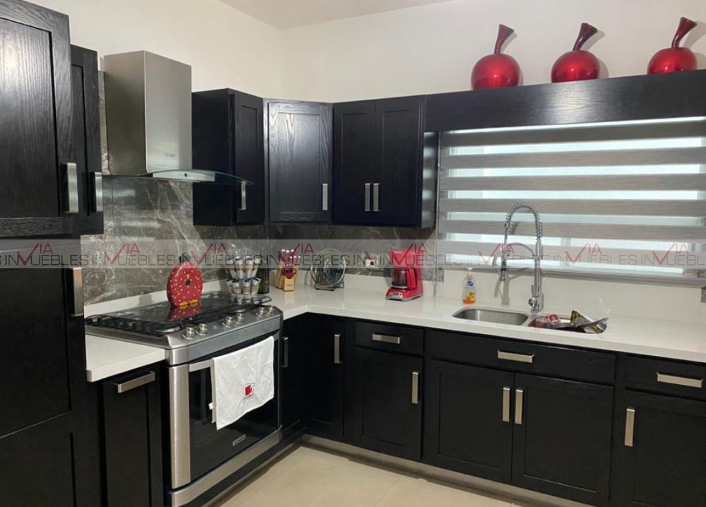 Excelente casa en venta, en cumbres elite 8 sector, totalmente equipada, cerca de parque, centros comerciales, escuelas y super mercados. Casa de 3 recamaras cada una con su propio baño y closet, estancia familiar segundo piso y cuarto de juegos en tercera planta con terraza y baño. Amplia sala-comedor con vista al patio, cocina totalmente equipada, lavandería y cuarto de servicio, cochera con portón eléctrico.