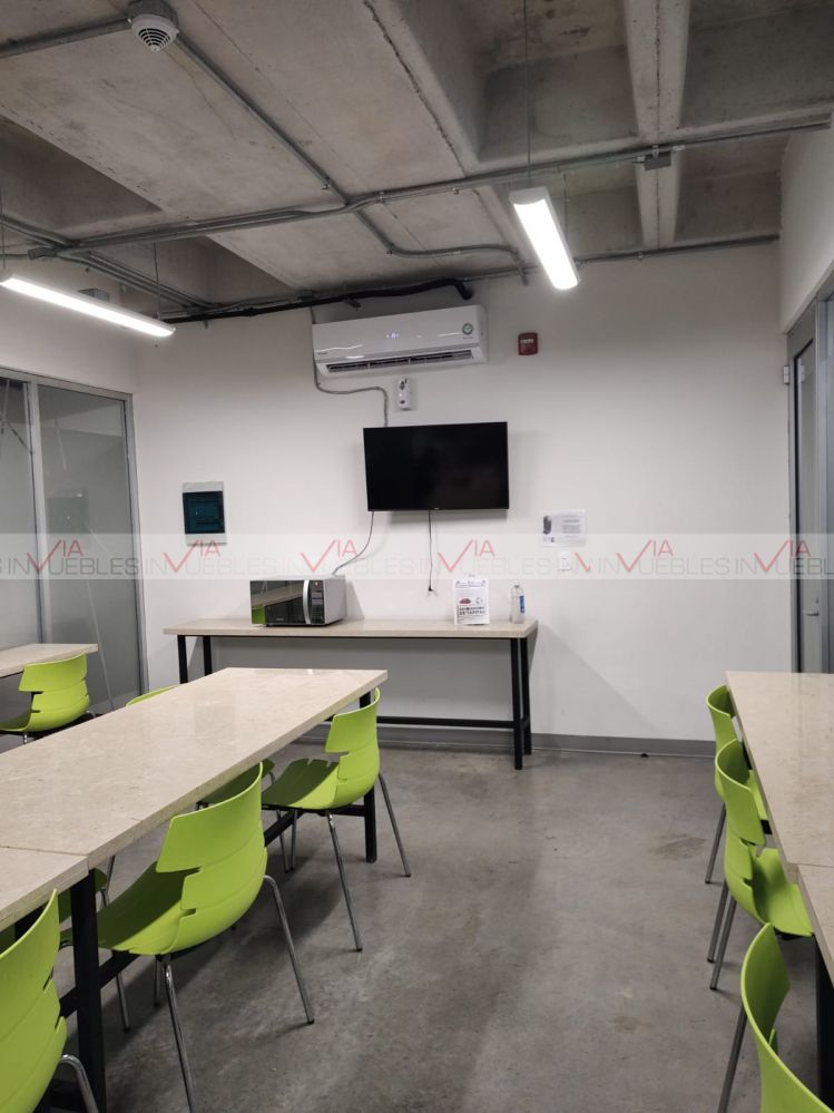 La torre incluye amenidades como acceso controlado con seguridad 24/7, estacionamiento de visitas, salas de juntas y comedor general para uso de todos los inquilinos.