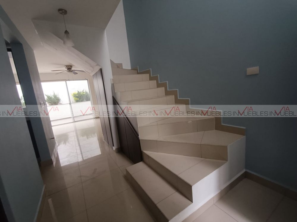 Primera planta cuenta con cocina integral, estufa, boiler, lavadora, secadora, refrigerador, área de sala, comedor, cochera para 2 autos techada, vigilancia 24/7 Renta Incluye mantenimiento.