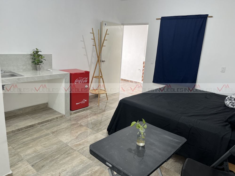 Departamento Loft, en una excelente ubicación a 5 minutos del Centro de Monterrey, el departamento cuenta con cama King, mesa con dos sillas, baño completo, frigobar, microondas, parrilla, (en el precio servicios incluidos agua, luz, gas e internet) con terraza con bonita vista al cerro de la silla.
