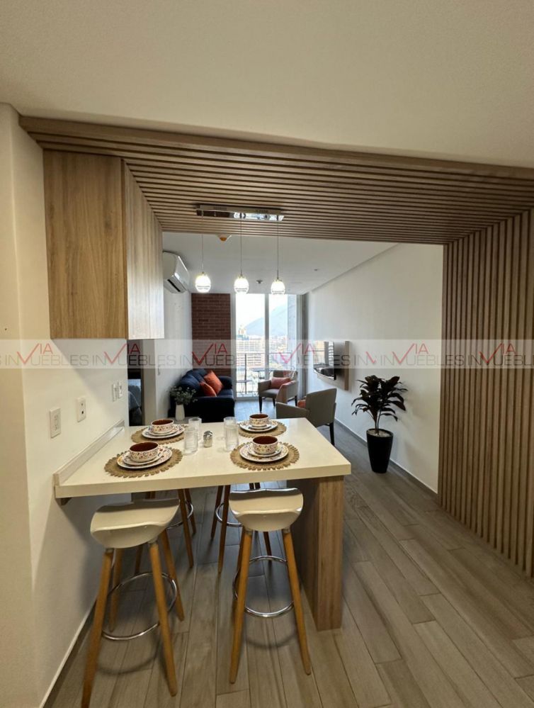Hermoso departamento estilo moderno, amueblado y equipado con excelente ubicación, con accesos a avenidas principales en centro Cuahutemoc, edificio de usos múltiples con departamentos, oficinas y comercios. El Departamento cuenta con 2 recamaras, recamara principal con walking closet y balcón, recamara secundaria con closet de pared, 2 baños completos, área social, cocina equipada con barra desayunadora, lavandería 3 minisplit, canceles de vidrio, 2 cajones de estacionamiento. La torre cuenta con amenidades, juegos infantiles, gimnasio, área de asadores precio renta $24,000.00 + $2,855.00 mtto.