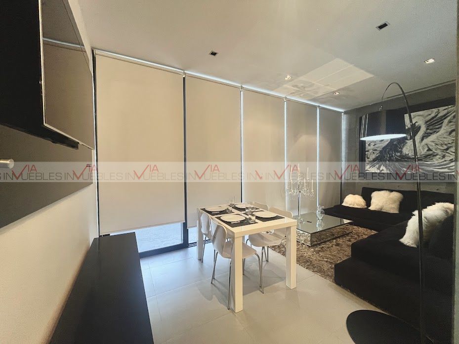 Departamento amueblado en renta en Torre Lovft con hermosas vistas a la Huasteca en la zona Valle Poniente. El departamento está muy bien decorado, cuenta con una recámara independiente, cocina integral, sala, comedor, baño completo y balcón. Cuenta con un cajón de estacionamiento, ideal para un ejecutivo.