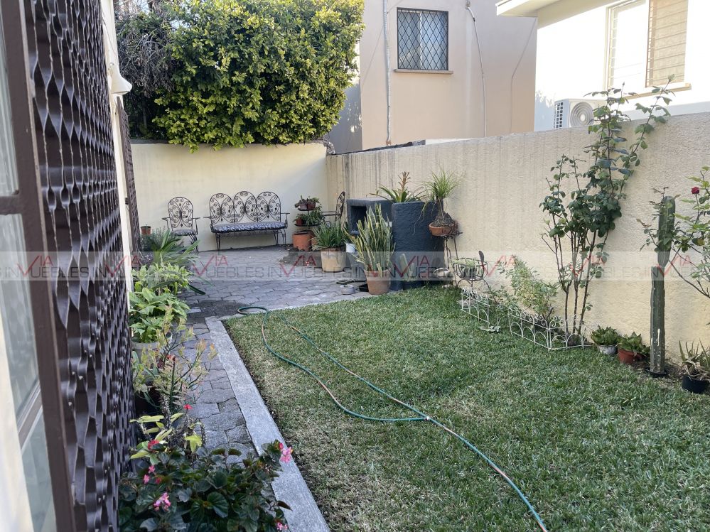 Al ingresar a la casa está un recibidor desde donde se aprecia el nivel hacia abajo, en donde se localiza sala, comedor, medio baño de visitas, cocina, lavandería y cuarto de servicio completo, así como la salida a un jardín pequeño.