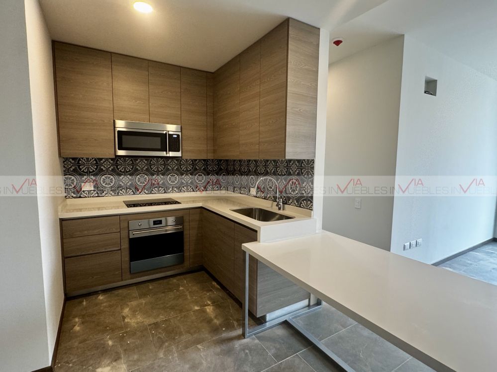 Renta de departamento de 1 recámara totalmente nuevo en la exclusiva Torre Kanat, con un baño completo, completamente equipado con estufa , campana y microondas marca smeg, refrigerador, centro de lavado, minisplits, persianas, cancel en regadera, muebles empotrados y dos cajones de estacionamiento. Disfruta de las hermosas vistas que ofrece por estar en el último piso de la torre además de amenidades de lujo como salón de eventos, sport bar, gimnasio, alberca semiolímpica, juegos infantiles, parque de mascotas, área de yoga, centro culinario, asadores y fogateros. Además, cuenta con seguridad, jardines, elevadores, gimnasio, terraza, cocina equipada, asadores y bodega de 4 metros cuadrados . Cuenta también con ventanas de doble vidrio .Ya incluye el mantenimiento, no incluye servicios. Opción a amueblar con renta en $28 mil pesos ¡No pierdas la oportunidad de vivir en este increíble espacio!