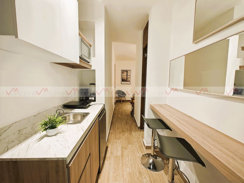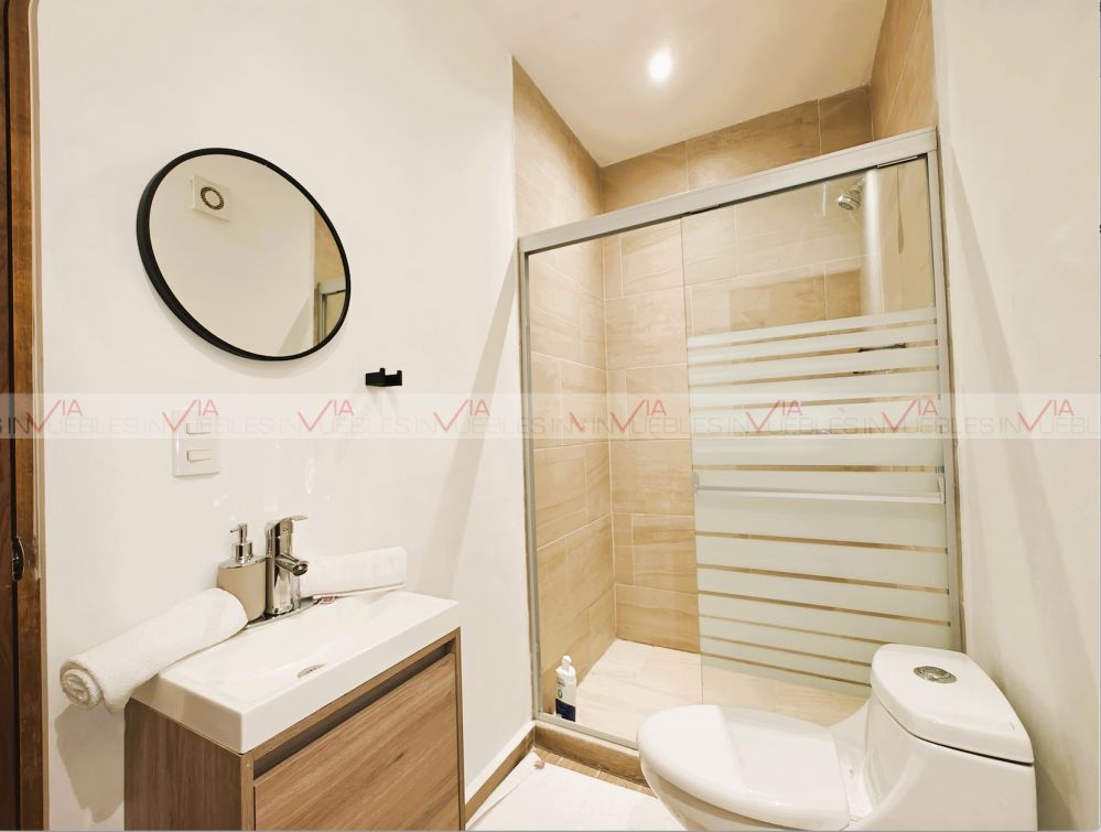El edificio cuenta con 2 medios baños para servicio de los habitantes. Rooftop, área coworking, sala lounge, lavandería equipada con lavadora y secadora.