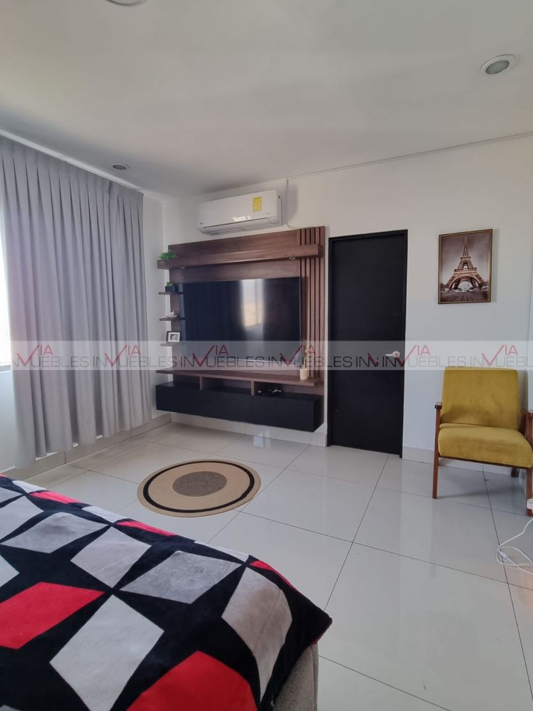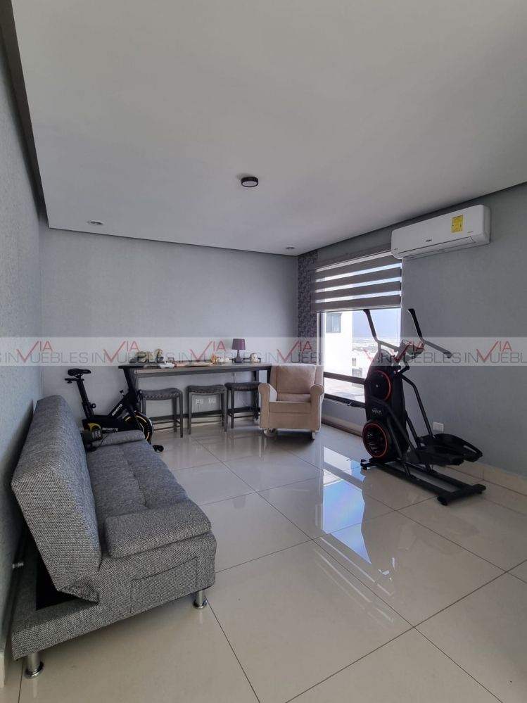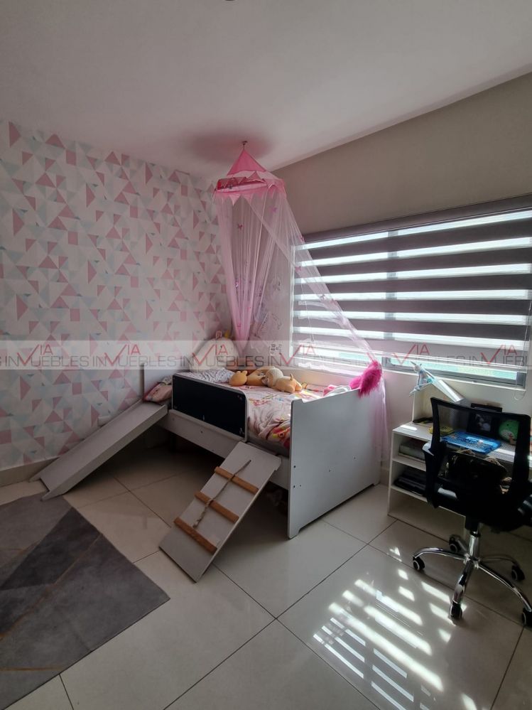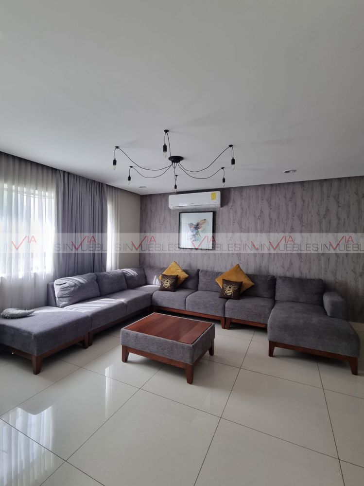 Vive en esta amplia casa de tres niveles totalmente amueblada dentro de excelente fraccionamiento con salida rápida a Paseo de los Leones, teniendo vigilancia 24/7, alberca, canchas deportivas, amplias áreas verdes, área de juegos infantiles, y salón de eventos.