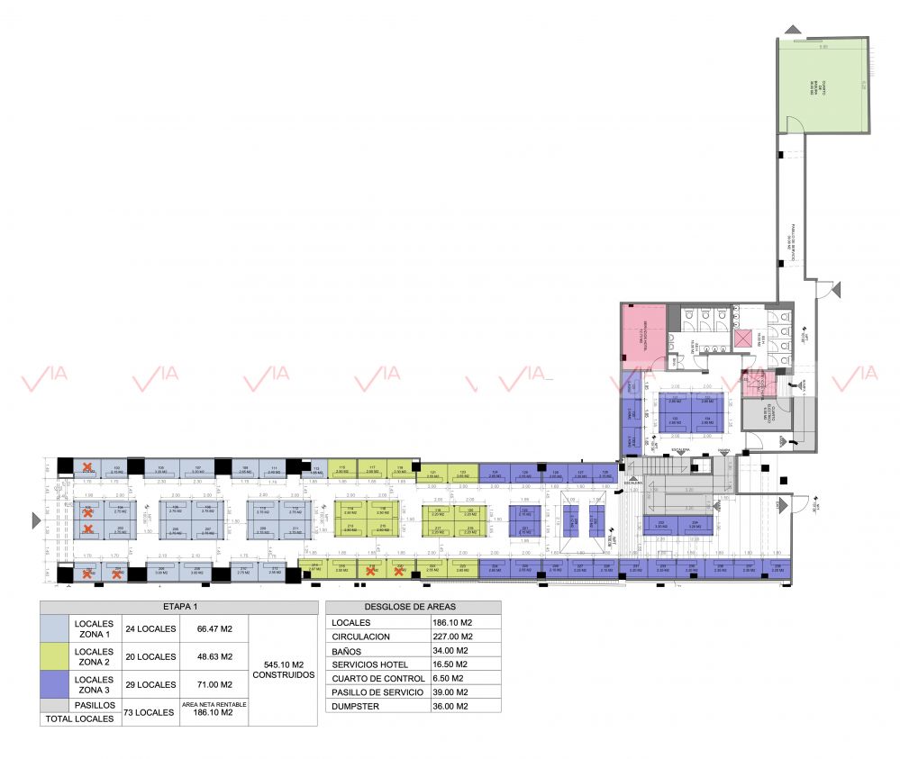 Tech Point Plaza, con 545 m2 de construcción en un solo nivel (73 Locales en total).