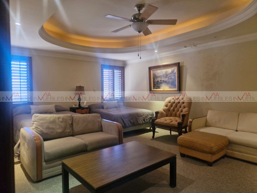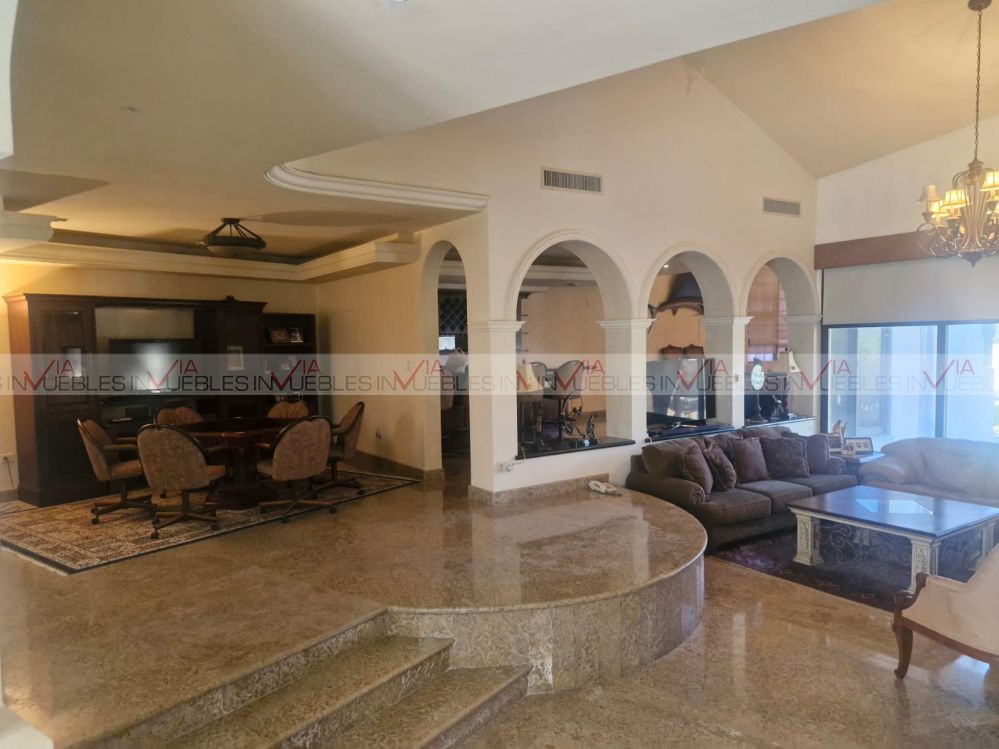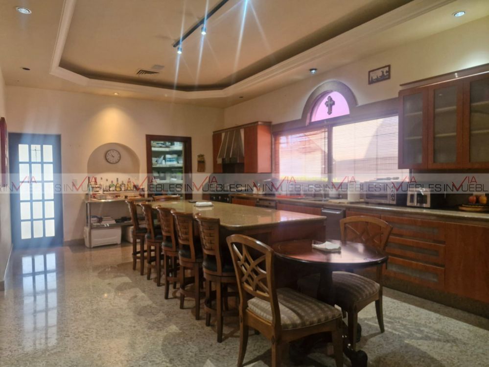 Planta Baja: área social de doble altura, cocina equipada con isla y alacena independiente, bar y cuarto de juegos, recámara principal en planta baja con estudio privado, baño vestidor y área adicional (gimnasio o suite privada), lavandería independiente. Planta Alta: estancia familiar, 3 recámaras con baño y vestidor, estudio, cocineta de apoyo, terrazas privadas, área exterior & entretenimiento, palapa equipada con asador, baños exteriores, casa de servicio independiente, bodegas, amplios jardines, 2 accesos motorizados + 2 accesos de servicio, infraestructura y equipamiento, pisos y cubiertas de mármol, 2 sistemas de A/C central, transformador propio de 75 KVA, 2 tanques estacionarios de Gas LP, servicios completos, perfil ideal: familia que busca residencia campestre sin alejarse de la ciudad, empresario que requiere privacidad y capacidad de recepción. Comprador patrimonial que prioriza tierra sobre densidad. Opción de venta equipada o amueblada.