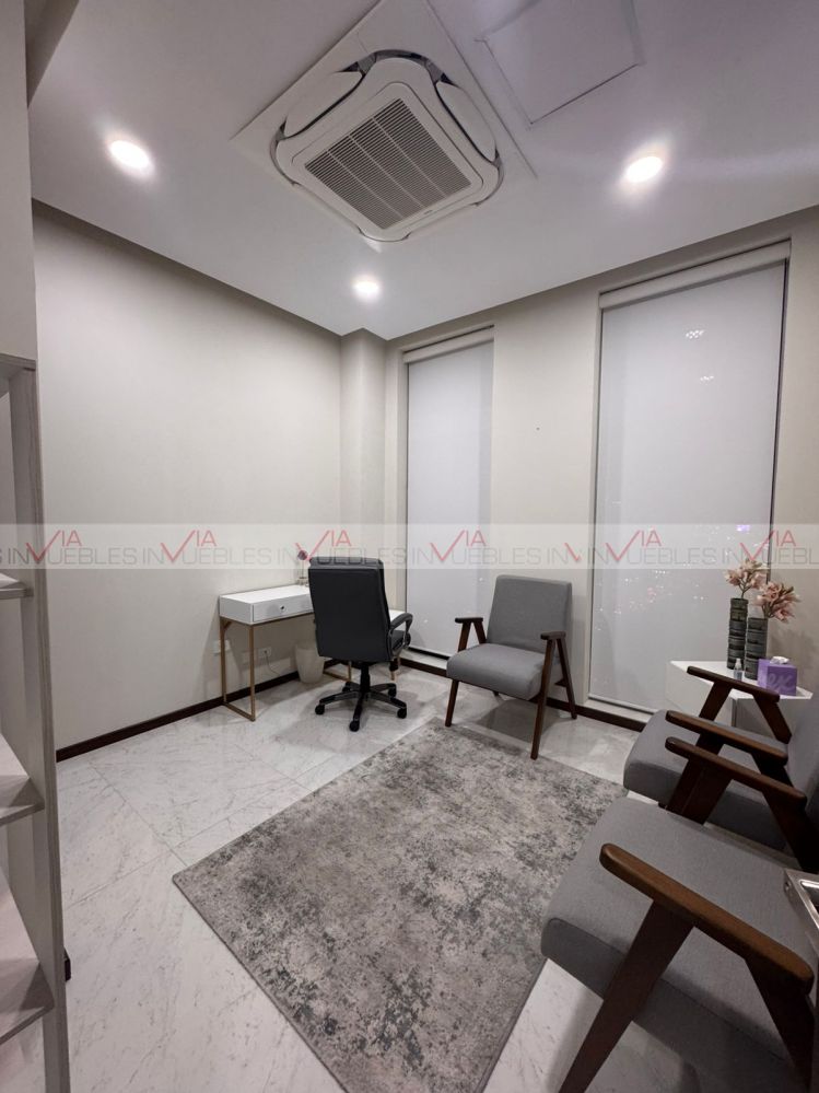 Oficina ideal para consultorio privado totalmente amueblado y decorado, comparte una amplia recepción con mostrador y sala de espera, cocineta, medio baño, mueble empotrado para archivo.