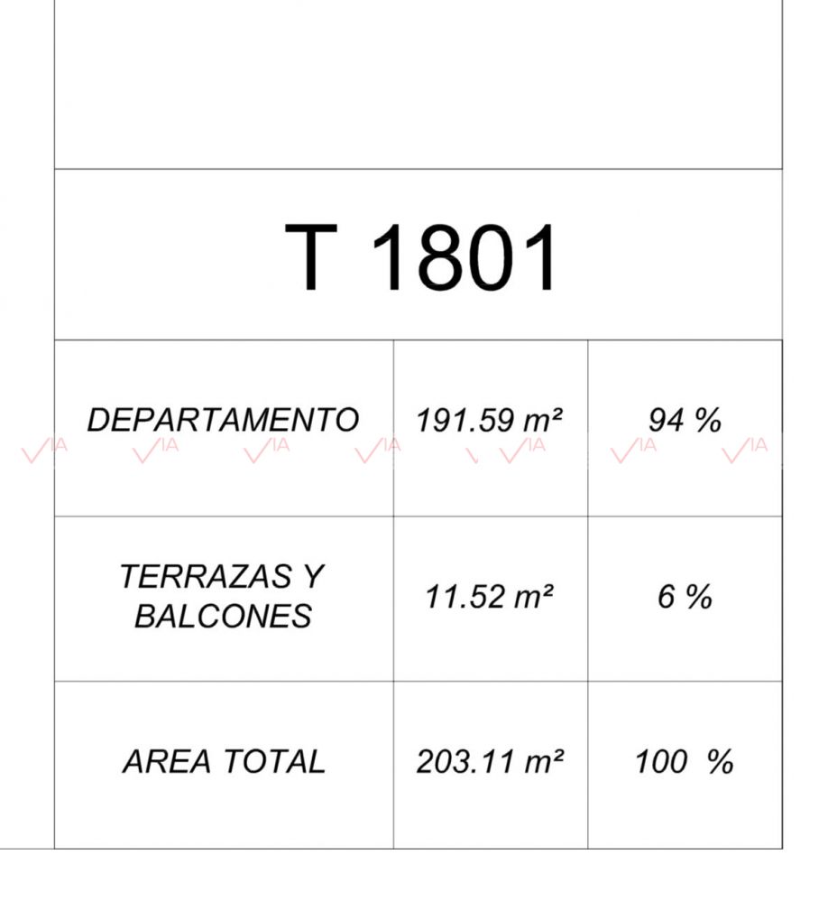 Moderno penthouse ubicado en nivel 18, con 203.10 m² de construcción: 191.59 m² interiores + 11.52 m² de terraza.