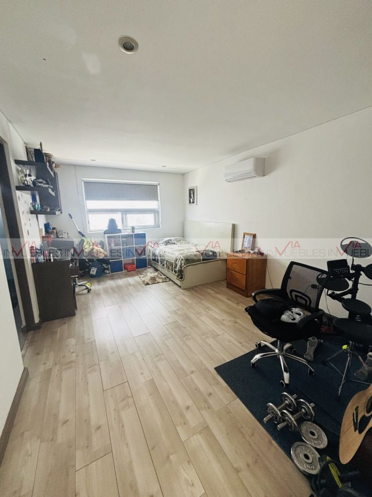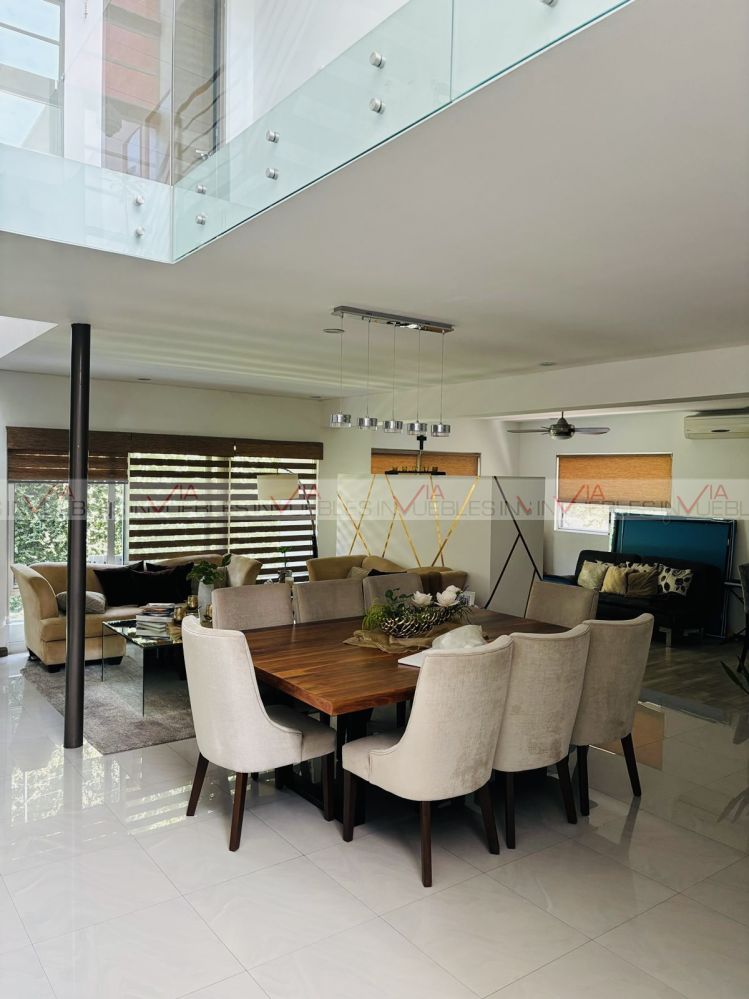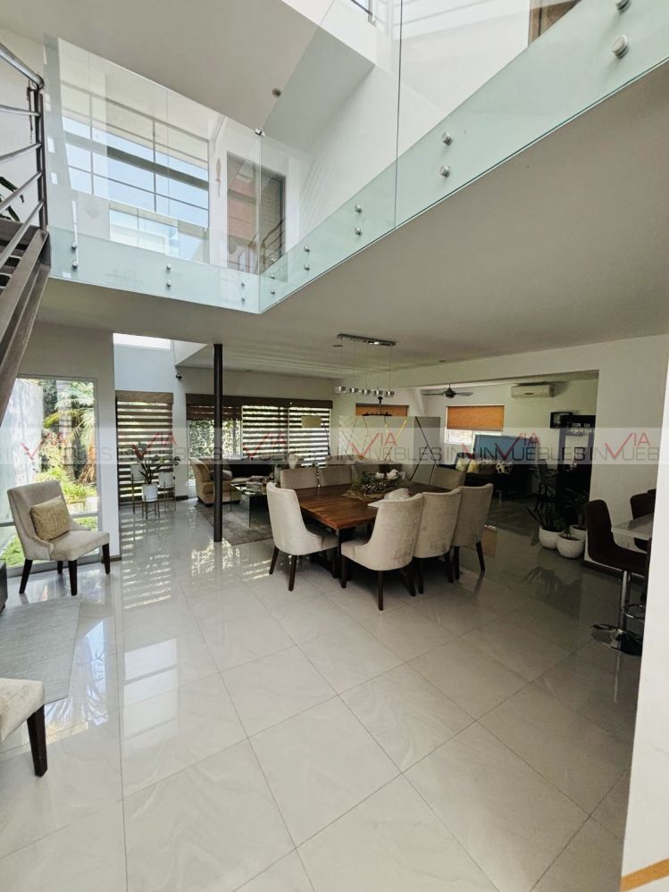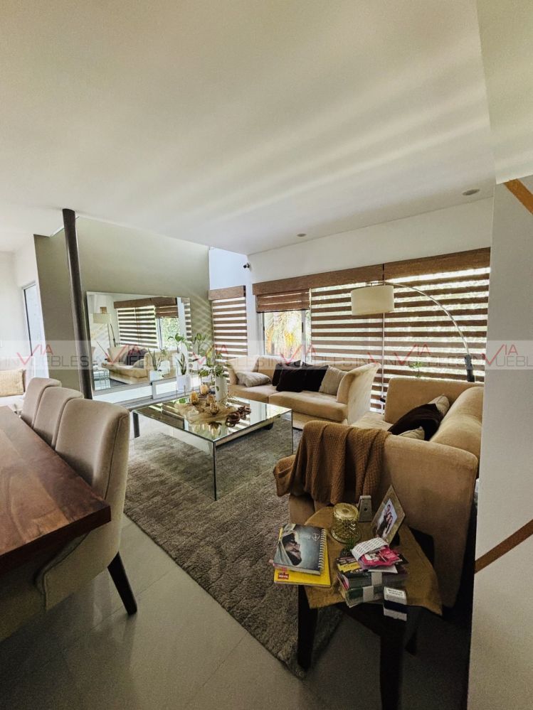 Hermosa Residencia en fraccionamiento privado al Sur de la Cd. con accesos controlados y seg.24/7, Privada con áreas comunes hermoso jardín, alberca, juegos infantiles, Palapa y Asadores. Accesos inmediatos a Carr. Nal., a 5 min HEB, Colegios, Hospitales y Centros Comerciales. La casa cuenta con 3 niveles, Primer nivel, cochera techada para 3 autos, 2 bodegas, sala, comedor, cocina, estancia muy amplia y baño completo. Cuarto de servicio con baño completo y lavandería. Segundo nivel cuenta con 3 recamaras c/u con baño-bastidor, muebles empotrados con escritorio, estancia tv, área closet-zinc y blancos. En tercer planta 1/2baño, bodega, cuarto de boiles y tinaco, área desatador y terraza panorámica a vistas espectaculares a la Sierra Madre. Estado excelente de conservación, únicos dueños.