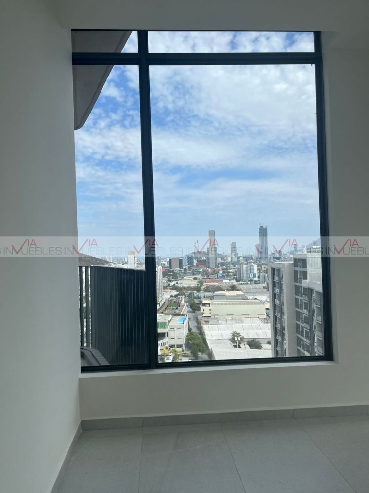 Exclusivo departamento en renta tipo PH ubicado en el piso 11 de edificio de reciente construcción en la zona de Santa María, una de las áreas con mayor conectividad en Monterrey, Distribución inteligente y funcional: 3 recámaras, Recámara principal con baño privado, doble lavaneta y vestidor. 2 recámaras secundarias que comparten baño completo. Medio baño de visitas Amplia sala ? comedor con excelente iluminación natural y hermosas vistas desde sus dos balcones ubicados estrategicamente para apreciar la belleza de los cerros de monterrey, cocina integral con diseño contemporáneo. Área de lavandería independiente. Cuarto de servicio con baño completo propio, una bonda en el área de estacionamiento de 10 mts cuadrados, dos cajones de estacionamiento, ubicados en el mismo piso de la bodega y acceso directo al elevador.