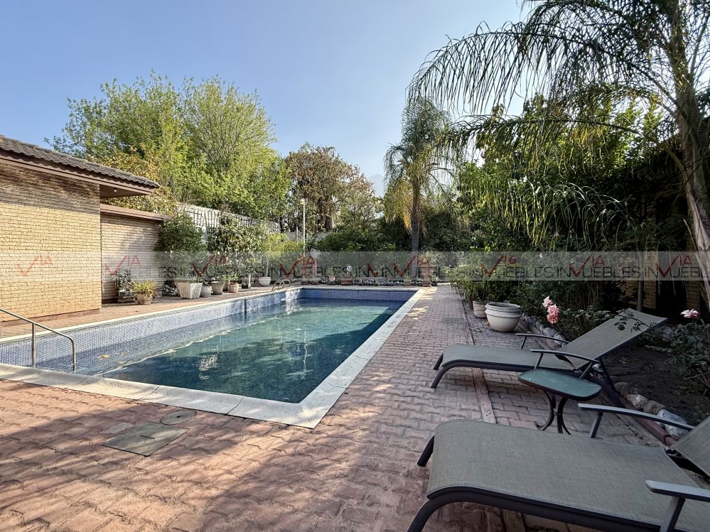 Casa en venta de 1500 m2 de terreno con 888m2 de construcción , en una de las mejores zonas de San Pedro como lo es la zona de los Ríos. Excelente opción para demoler y construir casa nueva o remodelar ya que la casa se encuentra en excelente estado de conservación. En un solo piso la casa cuenta con 4 recámaras cada una con su baño y walk in closet. Cuenta con una amplia sala y comedor, biblioteca con baño completo, cocina con ante comedor, cuarto de servicio y amplia lavandería , una terraza o amplia sala de TV techada con vista al patio y a la alberca. Cuenta con portones eléctrico y cochera para 4 autos. El patio tiene una variedad de arboles frutales como limones, naranjos, limas, etc