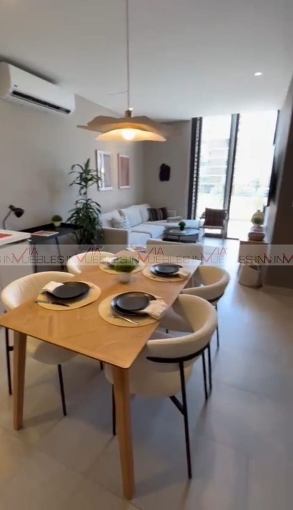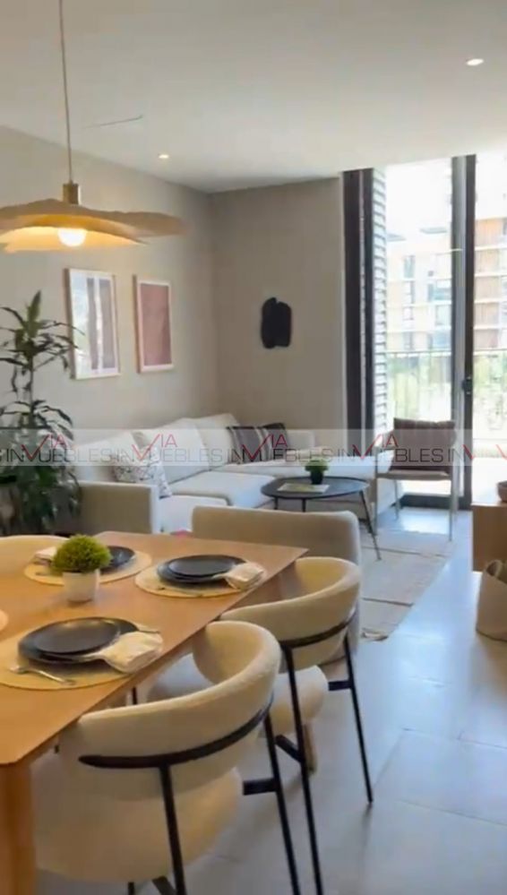 Oportunidad de traspaso al mejor precio en Arena Domo. Departamento de 96.6m2 totalmente amueblado, decorado y equipado (detartamento muestra) con 2 recamaras, 2 baños y 2 cajones de estacionamiento, la recamara principal cuenta con walking closet y baño completo, la recamara secundaria cuenta con closet de pared, un baño de uso comun y un area abierta donde se encuentra la cocina, comedor y sala con salida a una amplia terraza, ubicado en el tercer piso con vistas a la huasteca. Se entrega en abril 2027.