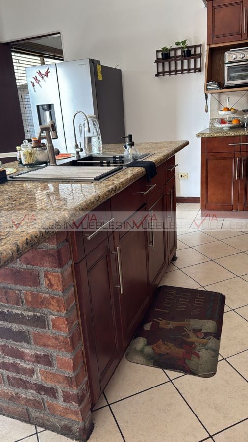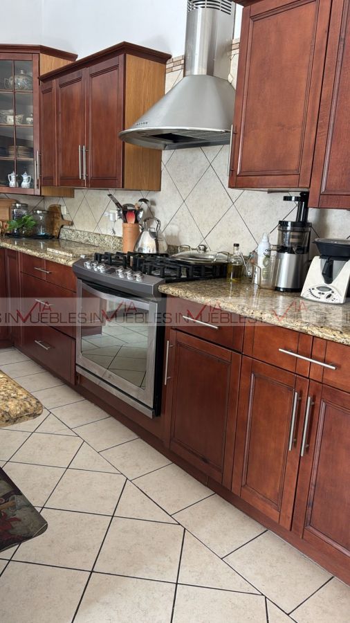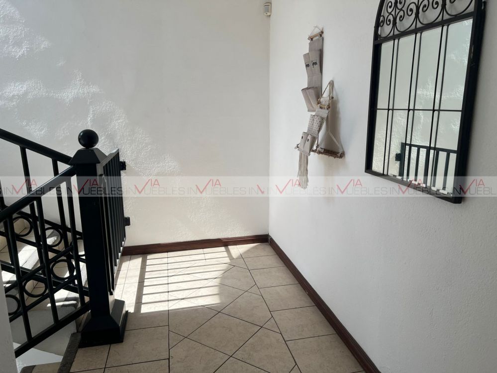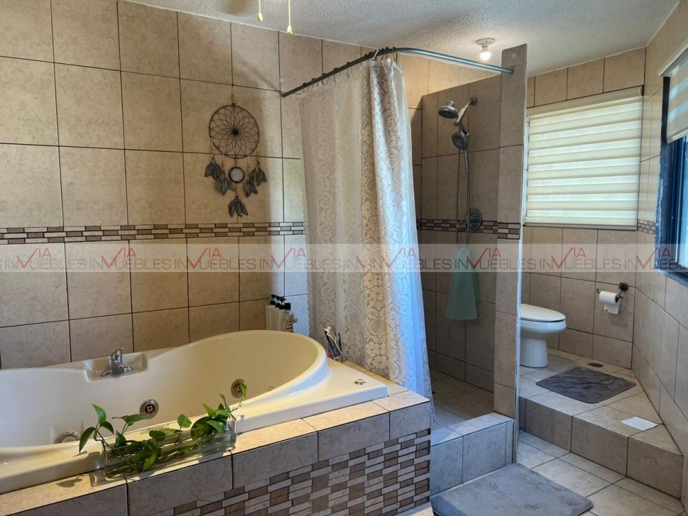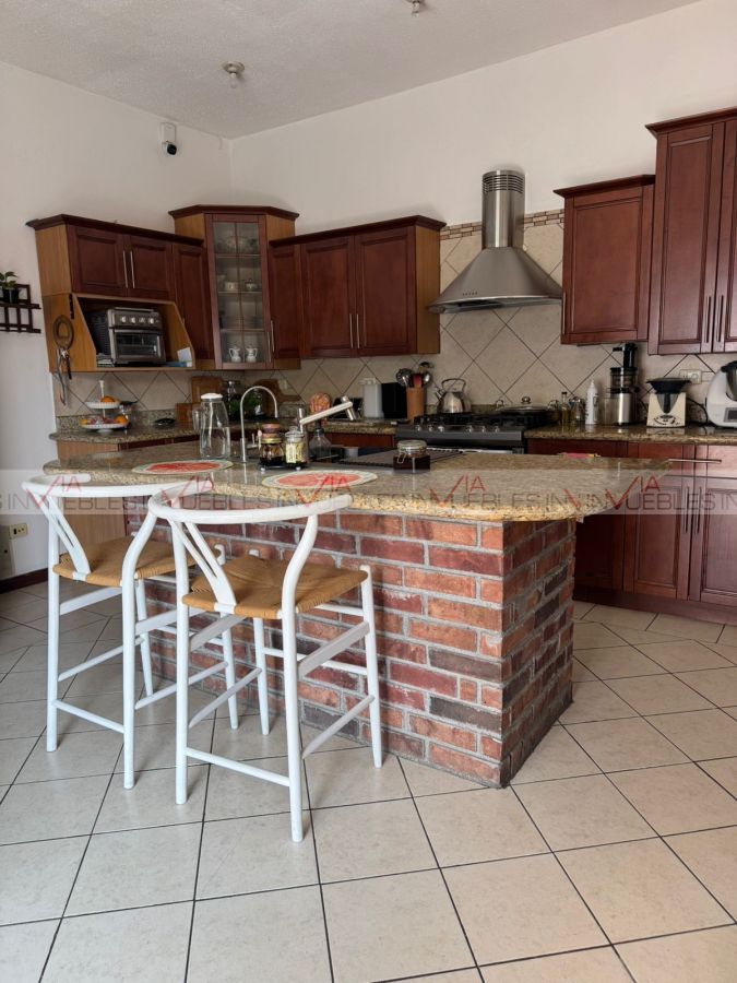 Hermosa casa estilo Cuernava con grandes ventanales brindando una hermosa visa, en Cumbres Sector 6D exclusivo y moderno, la casa cuenta con todas las comodidades y con la privacidad de no tener vecinos a un lado, es la última casa de una calle privada, cuenta con 4 amplias recamaras cada una con su walking closet y baño completo, la recamara principal cuenta con jacuzzi en el baño ademas de la regadera este baño tiene mucha amplitud y es como tener tu spa en casa, tiene una gran terraza la que tiene un asador, junto a la terraza esta la sala, y el comedor, cocina están en areas separadas, en planta baja una recamara con baño completo , en la sala es acogedora con su chimenea, en la parte de atras hay un patio que da al pasillo al exterior y alli una bodega para almacenamiento. ademas cuenta con un cuarto para servicio con su baño completo junto al estacionamiento, y tiene porton electrico.