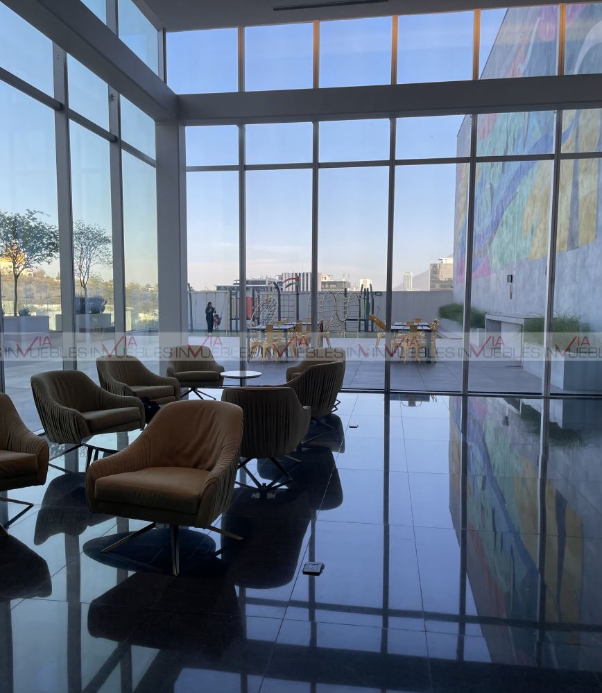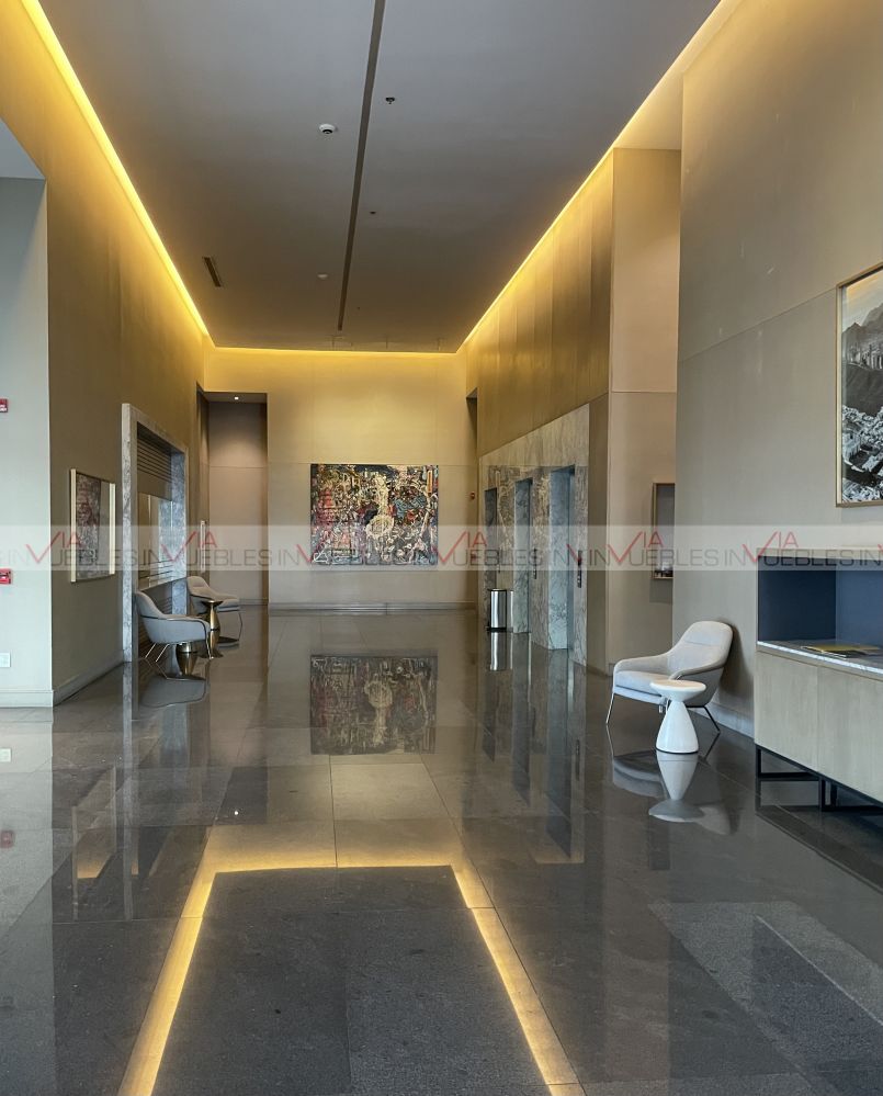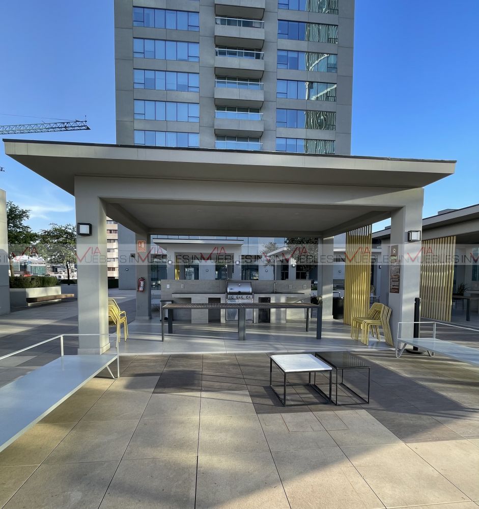 hermoso departamento completamente amueblado y equipado con electrodómesticos, todo de muy biuen gusto y calidad, es de 108m2, cuenta con 2Rec, 2 baños (uno de ellos es walking closet y 2 cajones de estacionamiento. mini splits, cortinas, terraza con vista a torre Rice, centro de lavado, muebles modernos, bar, y la torres ademas cuenta con 3 elevadores y diversas amenidades, como alberca, gim, ludoteca, suites, salas lounge, salones para eventos, terraza panorámica, super 7, Tm Hortons, Farmacia etc.