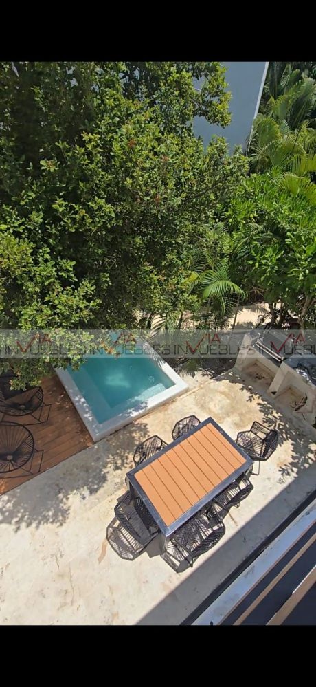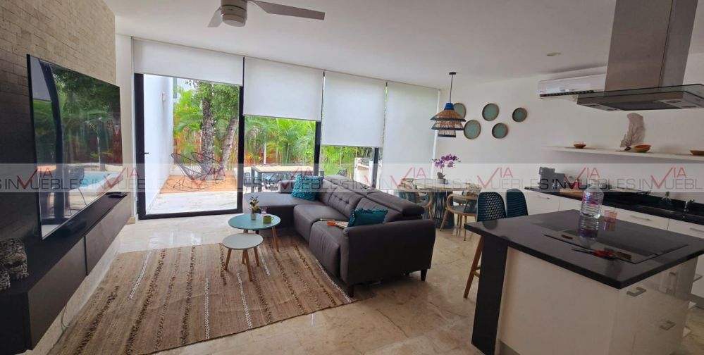 La villa cuenta en planta baja cocina integral con refrigerador, horno, microondas, parrilla eléctrica, comedor para 4, barra desayunador, sala en L con pantalla tv, medio baño, suite con cama king size, pantalla tv c/baño completo c/ cancelería y vestidor. Planta alta recamara con dos camas matrimoniales, baño completo con cancelaría y vestidor. Cuenta con tres terrazas dos en planta baja, primera con regadera exterior y mesa de jardín para dos, terraza dos trasera (tipo patio) c/asador, muebles de jardín & jacuzzi c/acabado veneciano, terraza tres planta alta c/tarja, c/muebles de sala de jardín y barra para 6. Piso de mármol, deck en 2 de sus terrazas, terraza planta alta con pérgola, acabados en pared, así como lambrín en suites. Cuenta con club playa privado KAY, uno de los mas exclusivos del sector, acceso al campo de golf con descuentos especiales, acceso casa club, restaurantes & bares. Campo de Golf catalogado como uno de los mejores campos de golf en México con categoría PGA, T de practica, mini super, terraza Sky con vista al campo del golf, salón de eventos.