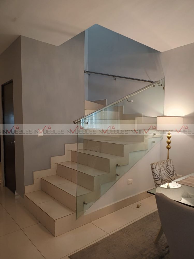 Hermosa, elegante y acogedora casa en Puerta de Hierro, totalmente amueblada y equipada, 150 m2 de terreno, 214 m2 de construcción, 3 recámaras (principal con walkin-closet y baño completo, puerta corrediza con espejo, las otras 2 recámaras comparten baño), hermosa cocina integral con estufa, campana decorativa e isla, 6 minisplits inverter frio/calor, acabados en papel tapiz en áreas sociales y baño social, cortinas y persinas en todas las áreas, persiana doble vista con tela de velo en comedor lo que le da un toque de elegancia en el comedor, lámparas decorativas, cortinas black-out y de velo en hermosa ventana a la altura de techo en recámara principal y ventanal de terraza que cuenta con vista al cerro, todos los closets y roperías, el de recámara principal cuenta con hermosa puerta corrediza con espejo instalada, elegante librero con sofa-cama en recámara secundaria instalado, muebles de baño, espejos en los baños y canceles de vidrio, elegante cancel de vidrio en escalera con pasamanos en acero inoxidable, lavandería techada con elegantes gabinetes, bodega, todas los protectores de ventanas y puertas, patio con piso y barda alta con picos,16 PANELES SOLARES, CISTERNA DE 5,000 LTS Y TINACO DE 1000 LTS con bomba hidroneumática, fraccionamiento privado con seguridad 24/7, caseta de vigilancia, parque con casa club y amenidades como hermosa cancha de futbol, juegos infantiles, alberca, hermosas áreas verdes. Localizada a dos cuadras de Paseo de los Leones y super principales como HEB, Walmart, colegios, zonas comerciales. Precio de renta con mantenimiento incluido.