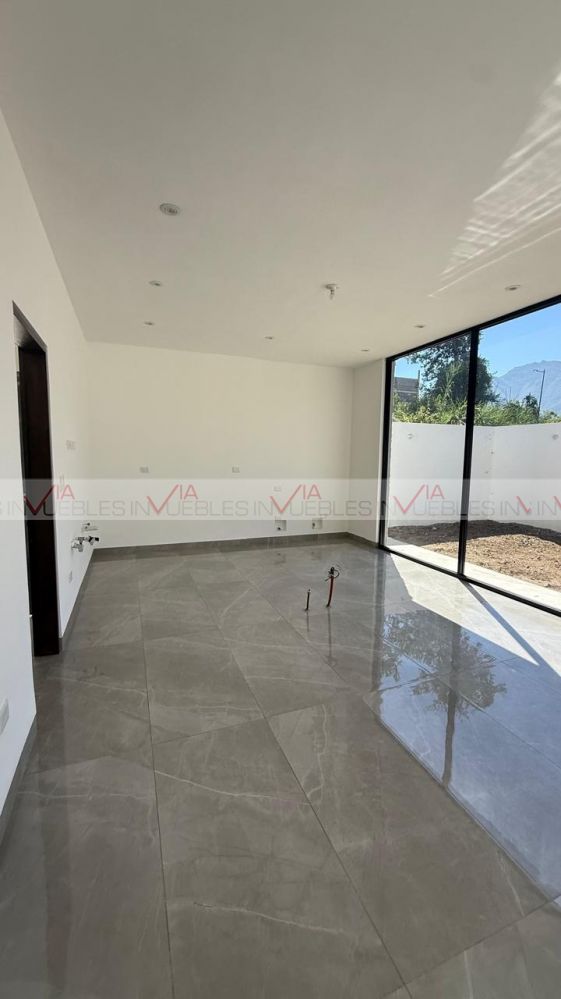 Hermosa residencia ubicada en fraccionamiento privado Campestre Santiago, acabados de primera y amplios espacios. Cuenta con 4 recamaras con walking-closet cada una y una de ella en la plata baja. Cochera para 3 autos , sala comedor y cocina. Amplio patio. Area social en Planta Alta.