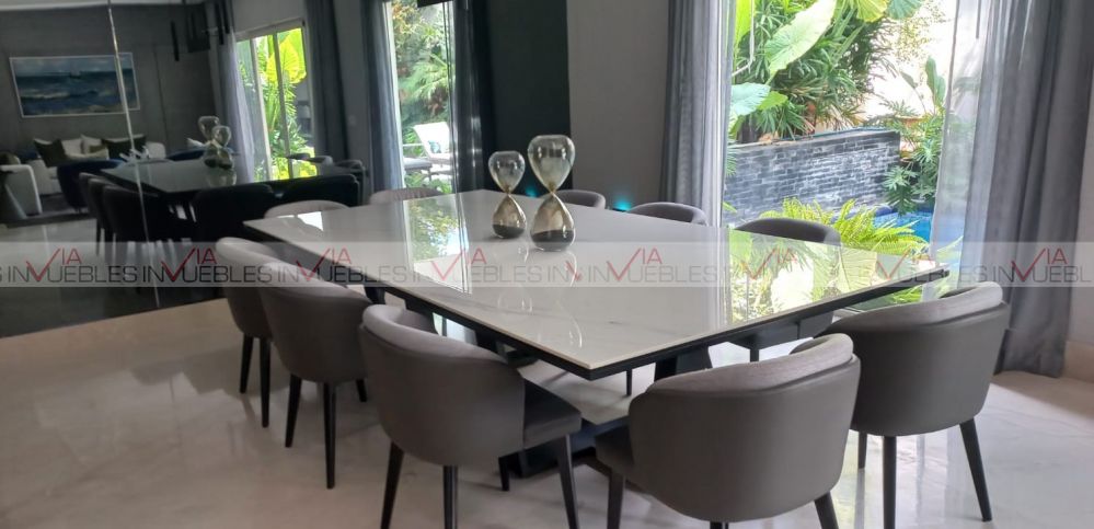 Hermosa Residencia AMUEBLADA con acabados totalmente de lujo, ubicada en exclusivo fraccionamiento en Carretera Nacional, con caseta de vigilancia y acceso controlado.