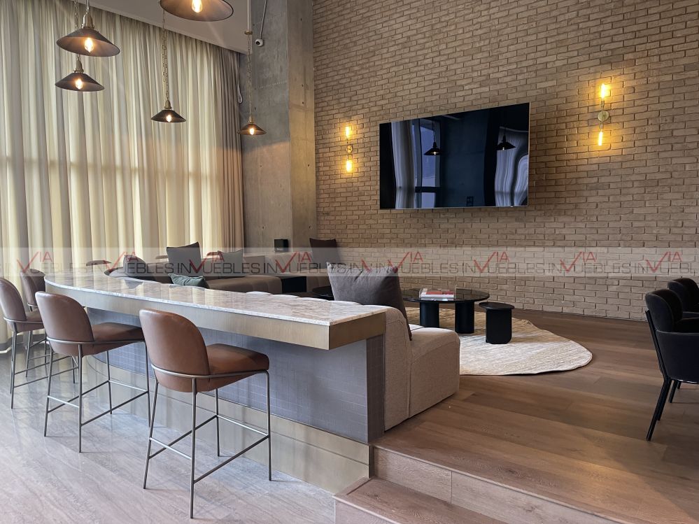 Precioso departamento para estrenar, con una dimensión de 80 mts2. Cuenta con una recámara principal semi amueblada con cama y buró. Posee un clóset de pared muy amplio. El baño tiene una cubierta muy extensa de mármol y su mueble de madera. Cuenta con cancel de vidrio en la regadera. Asimismo tiene un flex con puerta, que se puede adaptar como oficina o una segunda recámara, ya que cuenta con clóset de pared. La cocina es muy amplia y está equipada con electrodomésticos como refrigerador, microondas, estufa eléctrica con campana, horno, y filtro de agua en el fregadero. Posee una barra empotrada en muro ideal para colocar bancos. El área social es muy amplia y se extiende con un balcón con hermosas vistas desde el piso 2. Posee dos lugares de estacionamiento localizados en el S4 e identificados con los números 950 y 951. La torre posee increíbles amenidades como alberca, asadores, gimnasio, salón para ejercitarse, salas de usos mixtos, simulador de golf, área de co work, entre otras.